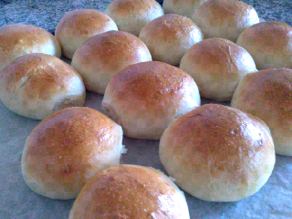 Lad dejen hæve 2 timer, slå bollerne op 32 stk, lad dem hæve til dobbelt størrelse ( ca. 1 time)