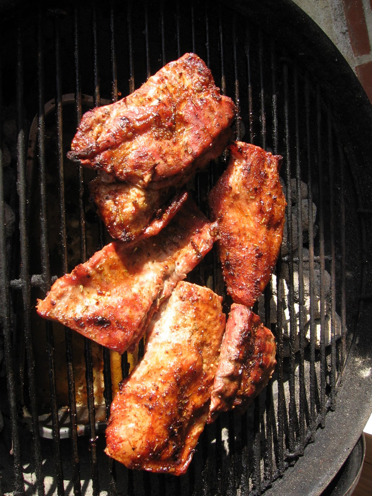 Kødet steges på Weberen i ca. en lille time ( til det er godt mørt) på indirekte varme.
